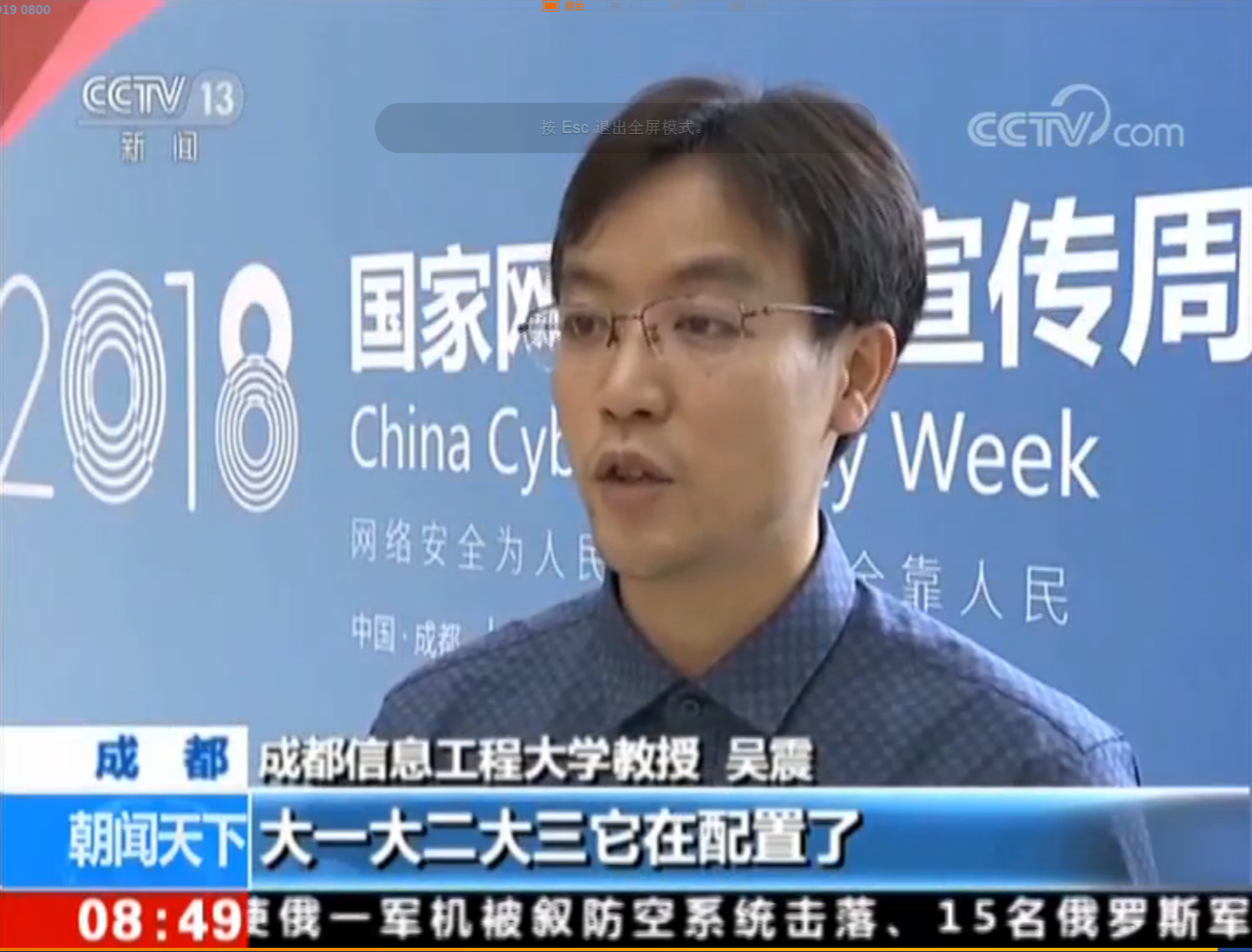 【本网讯】2018年国家网络安全宣传周于9月17日至23日在成都举行,9月19日,学校网络空间安全学院吴震教授就学校网络安全人才培养接受了央视记者采访。