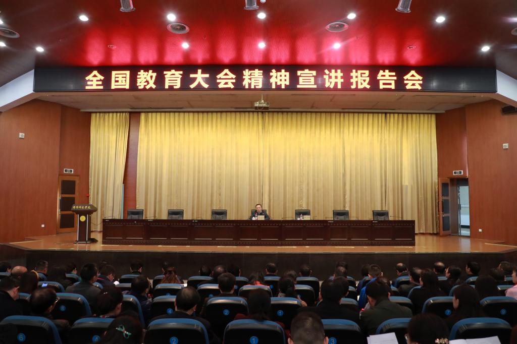 省委教育工委副书记、教育厅党组成员李光华向全体参会人员宣讲了全国教育大会精神。他指出,深入学习贯彻全国教育大会精神,是全省教育系统的头等大事,广大党员干部和师生员工要做到学深悟透、融会贯通,切实把思想和行动统一到中央精神和省委省政府的要求上来;要精心组织安排,创新方式方法,紧密联系实际,分层分类分批开展好宣讲活动;要加强党对教育工作的全面领导,认真履行管党治党主体责任,不断开创全省新时代教育改革发展的新局面。