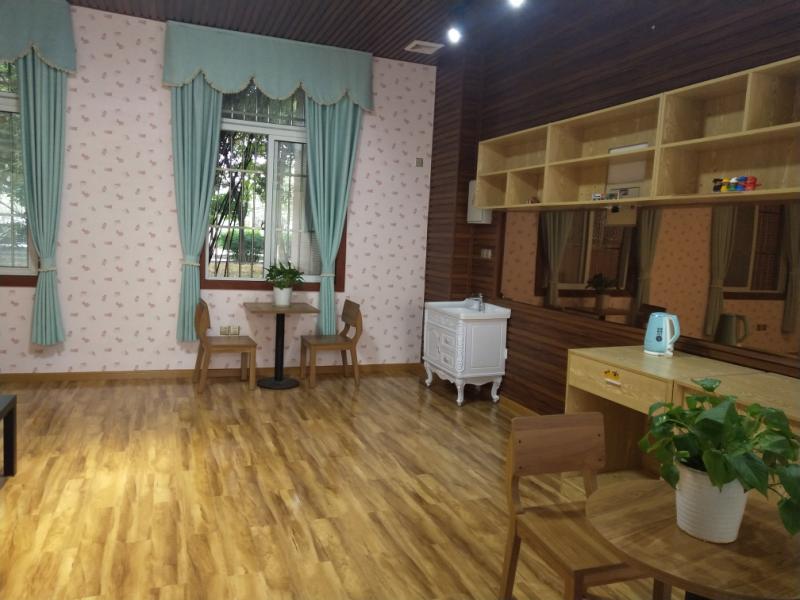 “妈咪宝贝屋”位于航空港校区第二教学楼一层(原咖啡吧),空间宽敞、明亮、温馨、舒适。从进门开始的指纹密码锁到置物台上的小玩具,无不体现出用心和贴心。室内设施功能齐全,内设哺乳区、护理区、冲奶区、休息区等多功能性分区。哺乳区配备有桌椅、沙发;护理区配置有尿布替换台、垃圾箱、置物桌、洗手台;冲奶区配置有电水壶、冰箱、收纳柜;休息区配置有婴儿床、换气扇、空调、绿植等设施。“妈咪宝贝屋”使用的材料、电器、家具等均绿色环保,并将定期组织专人清洁、消毒。既保护女教师哺乳期间的隐私,又为她们提供了安全、舒适的专门护理场所。