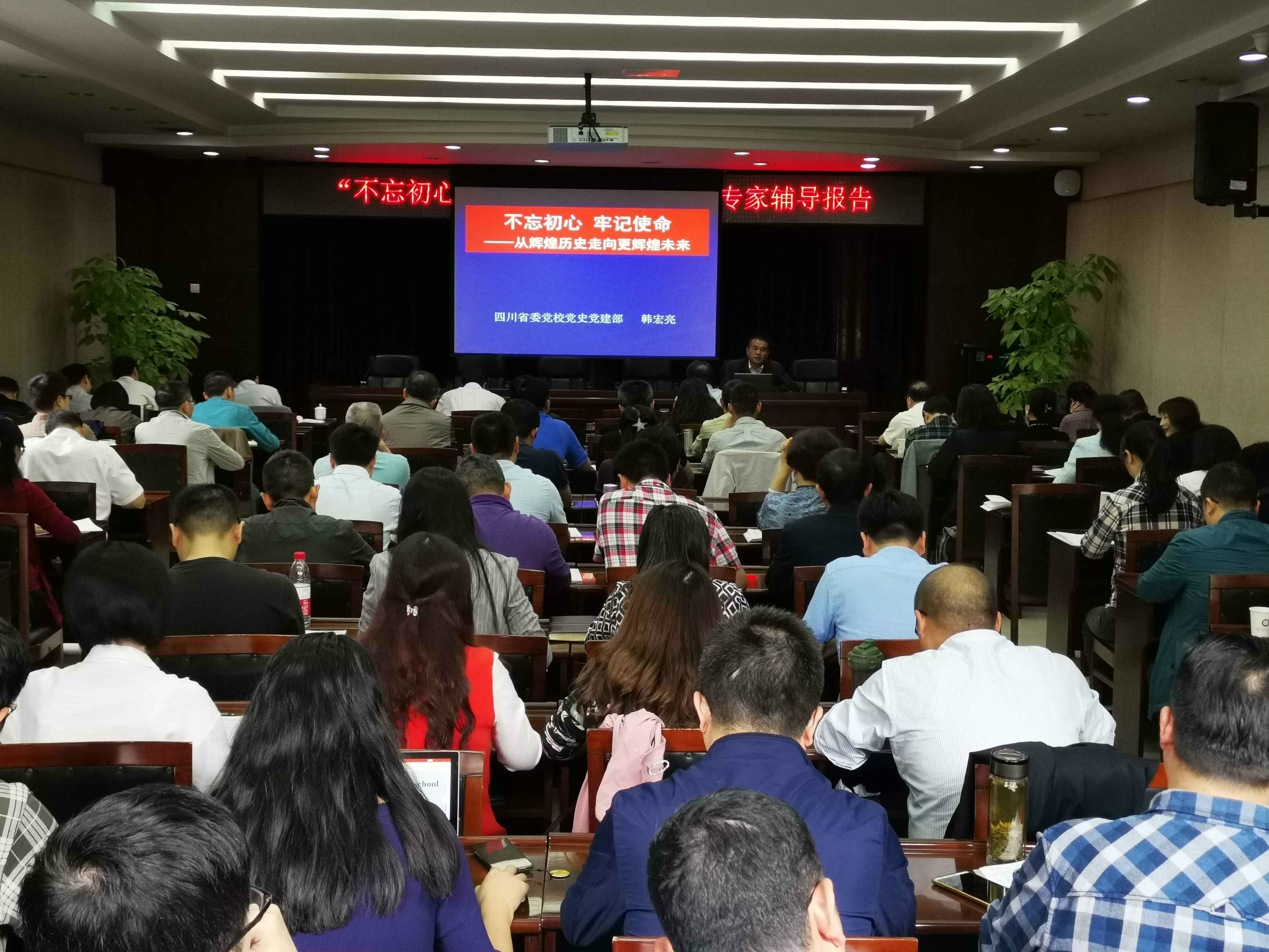 【本网讯】9月26日下午,学校举办“不忘初心、牢记使命”主题教育专家辅导报告会,特邀省委党校党史党建教研部副主任、硕士生导师,韩宏亮教授作专题辅导报告。全体中层以上领导干部参加了报告会,会议由学校党委书记周激流主持。