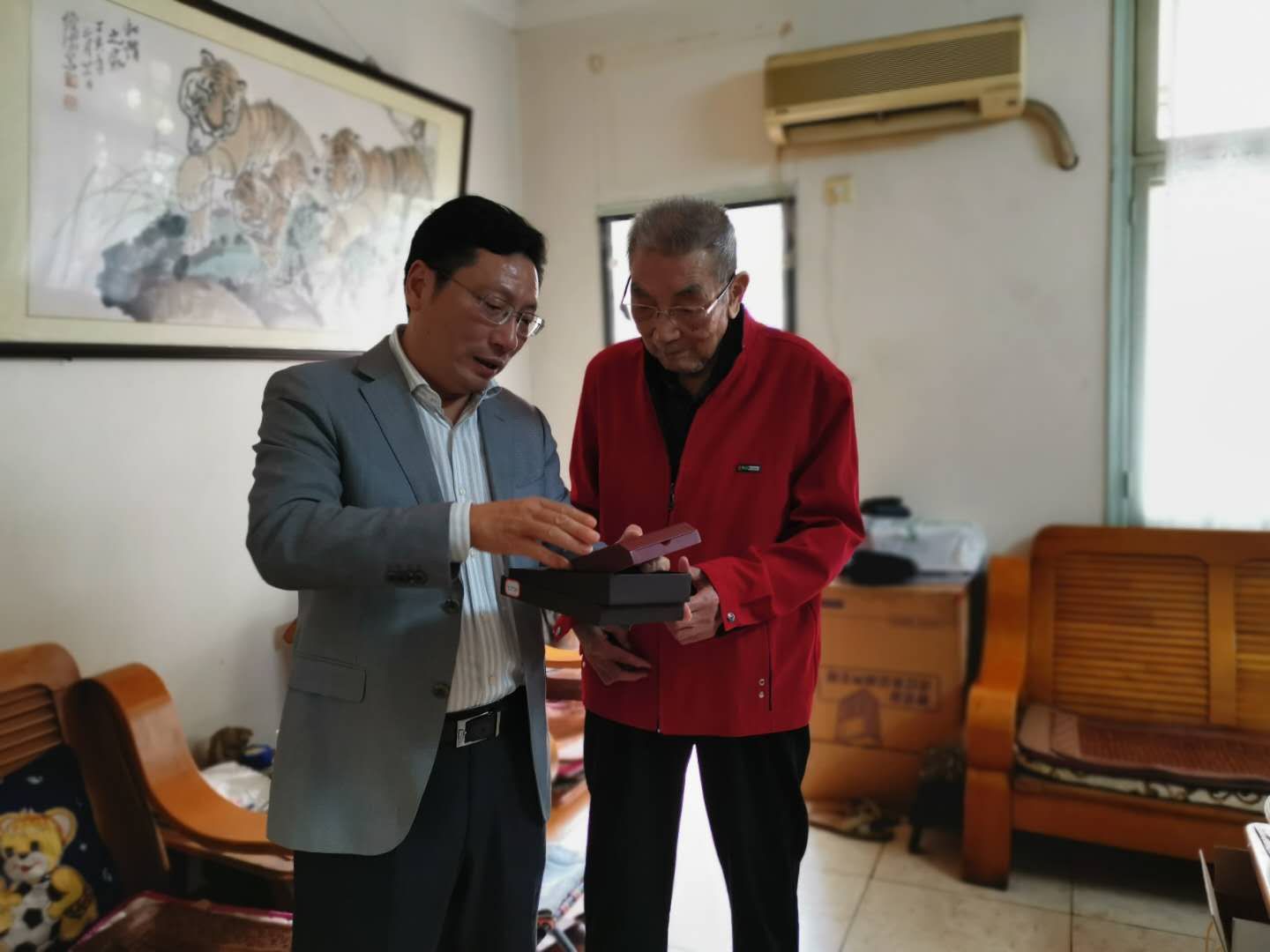 在看望慰问中,校领导们为老干部老党员佩戴好纪念章,表达了全校师生的崇高敬意和忠心祝贺。他们仔细询问老同志们的身体和生活情况,一同回顾学校发展历史并介绍了学校取得的成就和未来发展目标,感谢老同志们为新中国成立和建设、为学校发展作出的贡献,希望老同志保重身体,祝老同志节日快乐,健康长寿!
