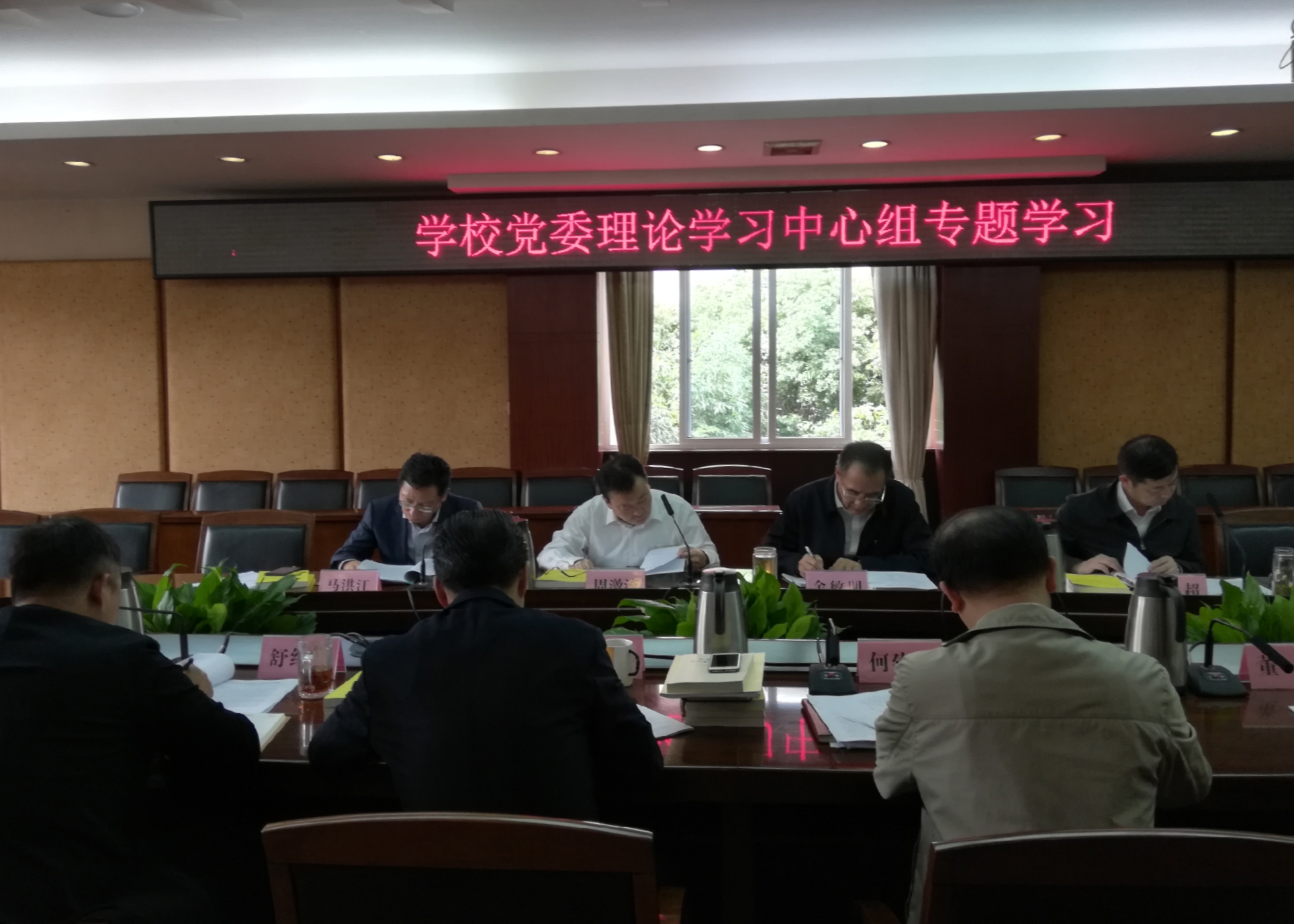 【本网讯】10月11日下午,学校党委中心组在行政楼第七会议室召开理论学习会,专题学习中国共产党党史、新中国史和“不忘初心、牢记使命”主题教育相关精神。党委中心组全体成员参加了学习,会议由学校党委书记周激流主持。