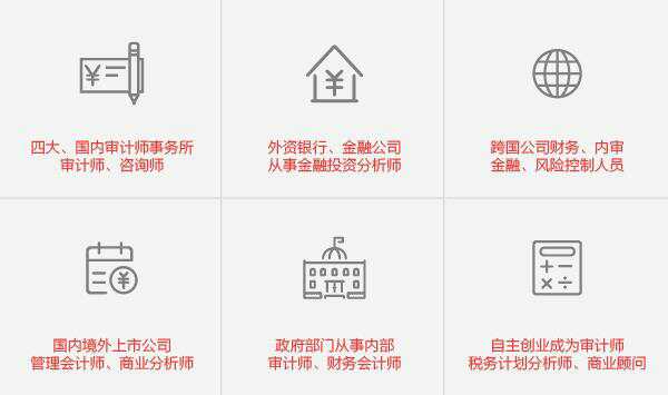 ACCA被誉为“财会领域的MBA证书”,会员薪资普遍较高,大多数会员及准会员在全球性跨国公司、跨国银行、会计师事务所等企事业单位担任重要的管理职务。成为ACCA会员,将拥有广阔的就业前景和良好的职业发展空间。
