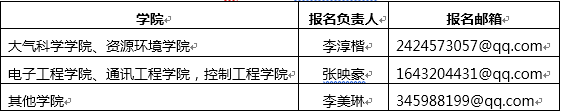有意参赛的同学填写《选拔赛报名表》,由所在班级的班长统一邮件报名。5月22日之后学校主页公布考场信息,没有成功报名的的同学,请联系杨拍老师,报名邮箱信息如下:
