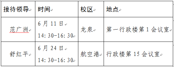 2.预约时请填写《成都信息工程大学校领导接待日预约登记表》,以便统筹安排。