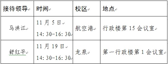 2.预约时请填写《成都信息工程大学校领导接待日预约登记表》,以便统筹安排。