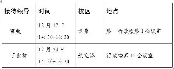 2.预约时请填写《成都信息工程大学校领导接待日预约登记表》,以便统筹安排。