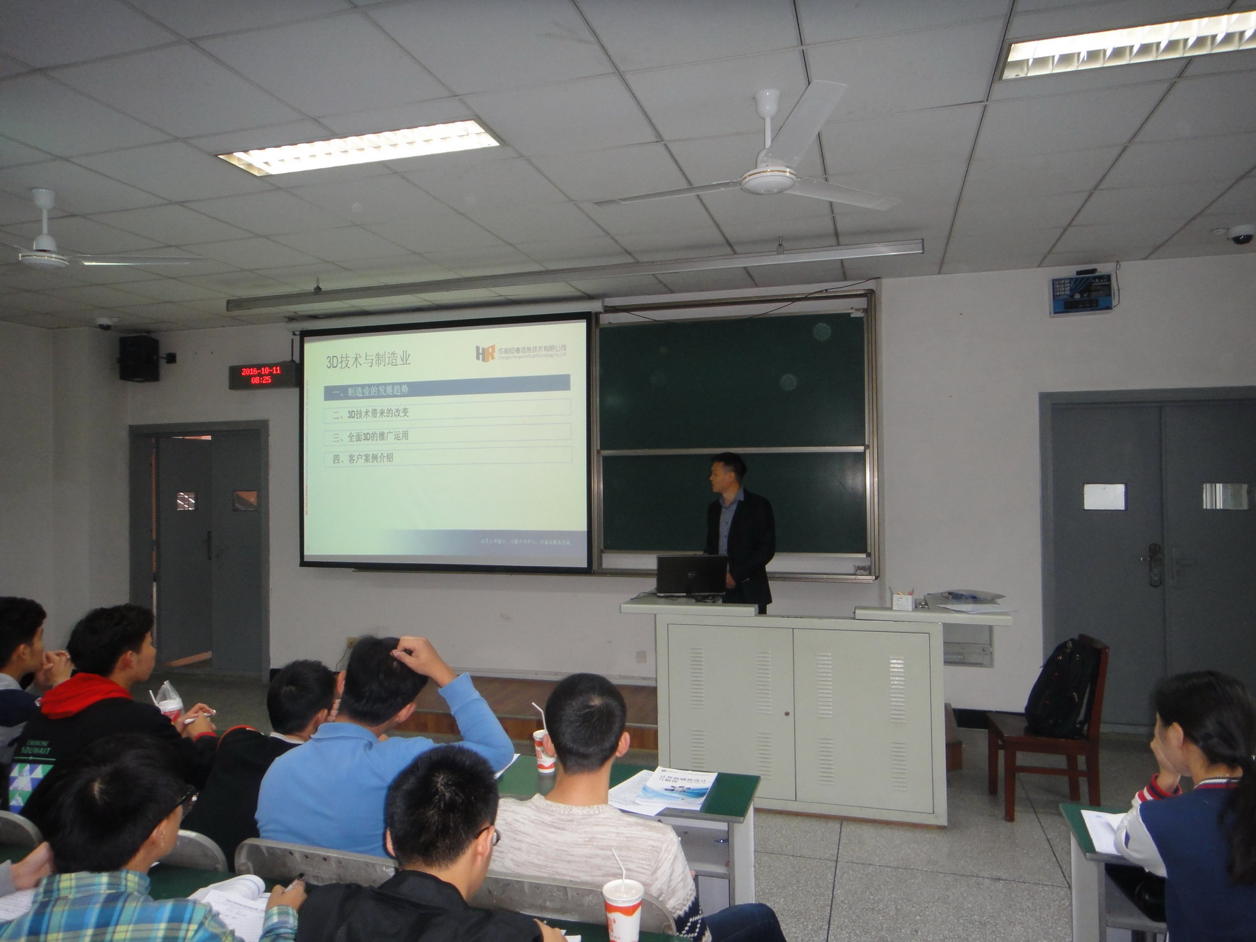 【本网讯】10月12日,成都恒睿信息技术有限公司技术经理薛波、市场部经理晏娇等一行到成都信息工程大学H2203教室为机械电子工程专业2014级同学作《CAD/CAM》随堂讲座。
