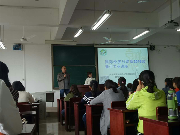 【本网讯】10月19日,2016级国际经济与贸易的新生专业教育在L2311教室举行。专业教育由国际经济教研室主任刘强,教师许红主讲,2016级国际经济与贸易专业全体新生参加教育。