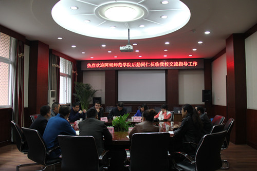 袁世斌对阿坝师范学院后勤同仁的到来表示热烈欢迎。他简要介绍我校后勤历史沿革以及后勤基本情况。双方重点就后勤制度化建设及学生公寓空气能热水系统进行了深入探讨。陈松表示,后勤管理制度的建设与完善是他们当前的重要课题,建立科学合理实际的后勤管理制度对今后的工作有着重要的指导作用。双方就空气能热水回流系统进行了探讨,相互交流了实际使用中出现的问题及解决方案。