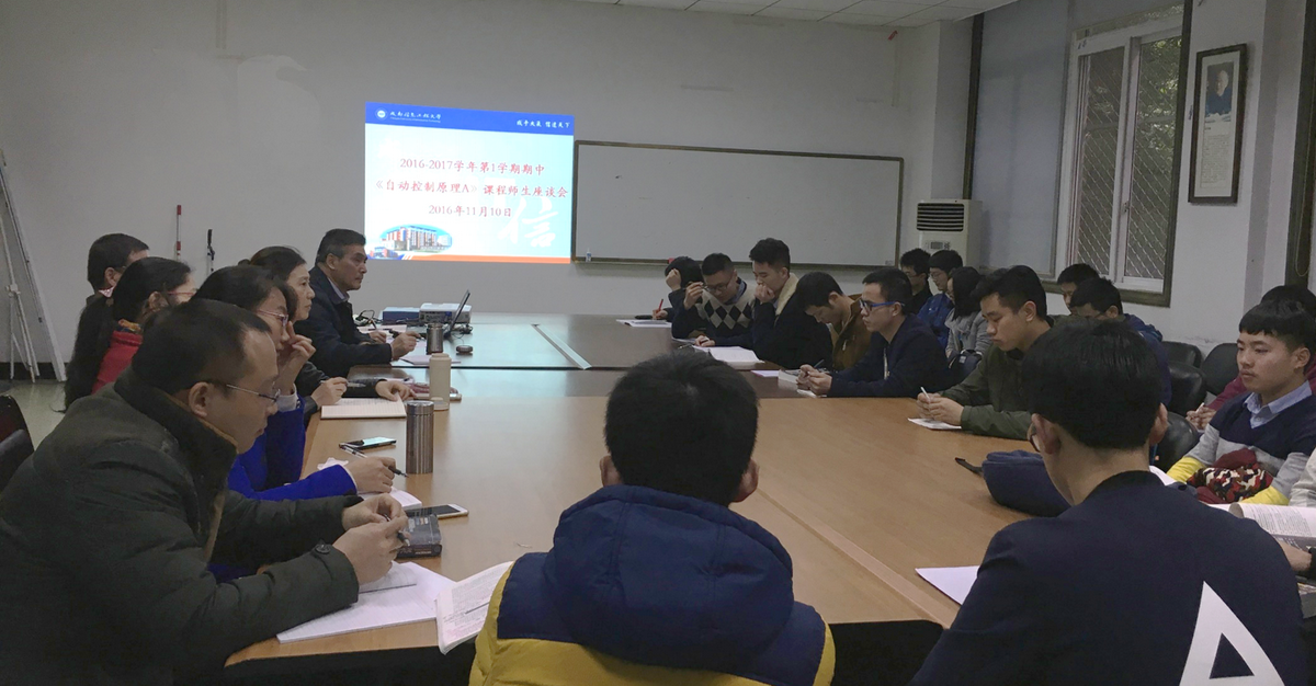 为了充分发挥学生在教学工作中的主体作用,及时了解广大学生对学院教学质量、教学管理等方面的意见和建议,发现教学各环节中存在的问题,强化教学工作的信息反馈,提高教师教学质量和教学管理水平,根据工作安排,学院于11月10日在信息楼108室召开《自动控制原理A》课程师生座谈会。党总支书记邓丽琴,副院长严寒冰,课程负责人巨辉、课程组老师瞿福存、周蓉、付克昌、陈丹、郭德全、教务办人员以及14级学生代表参加了此次座谈会。