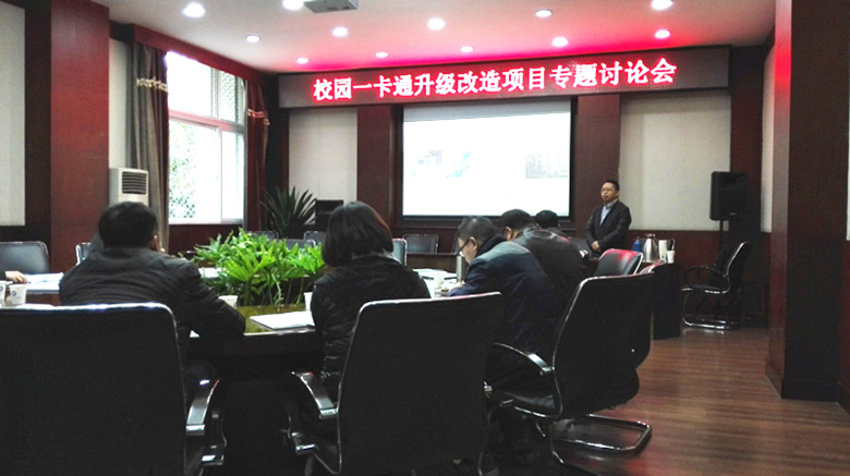成都仁和智胜科技发张有限公司李志刚总经理详细介绍了目前高校校园一卡通发展的方向和基于校园一卡通平台建立的数字化校园构架。与会人员结合学校实际,对升级改造方案涉及的应用平台功能、数据提炼和共享、相关资源整合利用、定制应用对接和配套、数据信息安全等方面进行了沟通。下一步,学校将征集各部门的使用需求,制定出完善可行的升级改造方案。