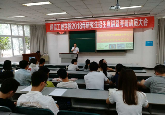 【本网讯】7月7日下午,通信工程学院在4112教室召开了研究生招生宣讲会暨考研动员会。通信工程学院2014级本科生和低年级研究生参加了会议。会议由通信工程学院副院长杜江教授主持。