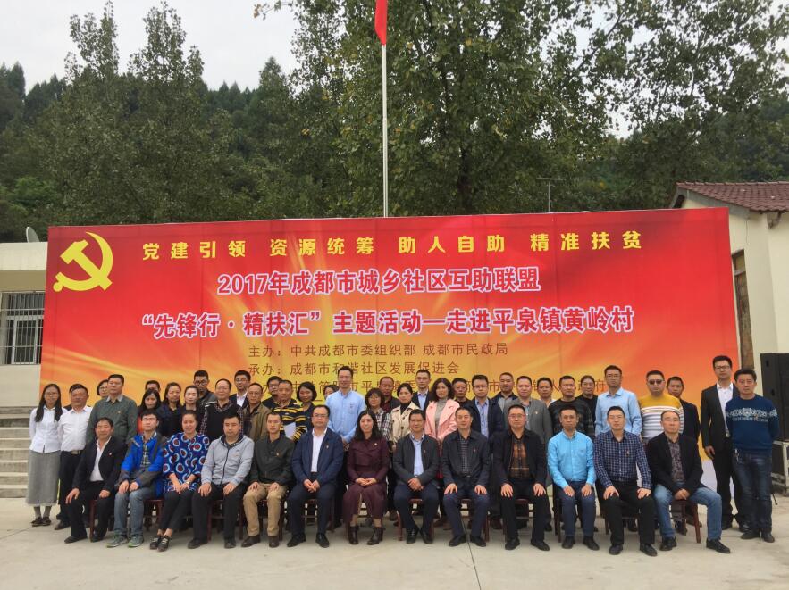 【本网讯】10月19日,由中共成都市委组织部主办,成都市和谐社区发展促进会承办的“2017年成都市城乡互助联盟‘先锋行·精扶汇’主题活动——走进平泉镇黄岭村”在简阳市平泉镇黄岭村举行。中共成都市委组织部,中共简阳市常委、组织部,简阳市民政局,成都市慈善总会等单位和相关领导参加了活动。文化艺术学院副院长徐翀,社会工作教研室副主任席曾苹参加了本次活动。