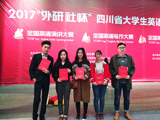 【本网讯】2017“外研社杯”全国大学生英语挑战赛(UChallenge)四川赛区决赛于10月28日在四川师范大学(成龙校区)落下帷幕。来自四川大学、电子科技大学、西南财经大学、西南交通大学、四川师范大学等省内高校两百余名选手入围四川赛区决赛。我校参赛的五名选手成绩优异,获得一等奖两项、二等奖一项、三等奖两项。我校网络工程153班的彭学思同学在写作比赛中荣获四川赛区第一名,将参加12月初在北京举行的全国总决赛。