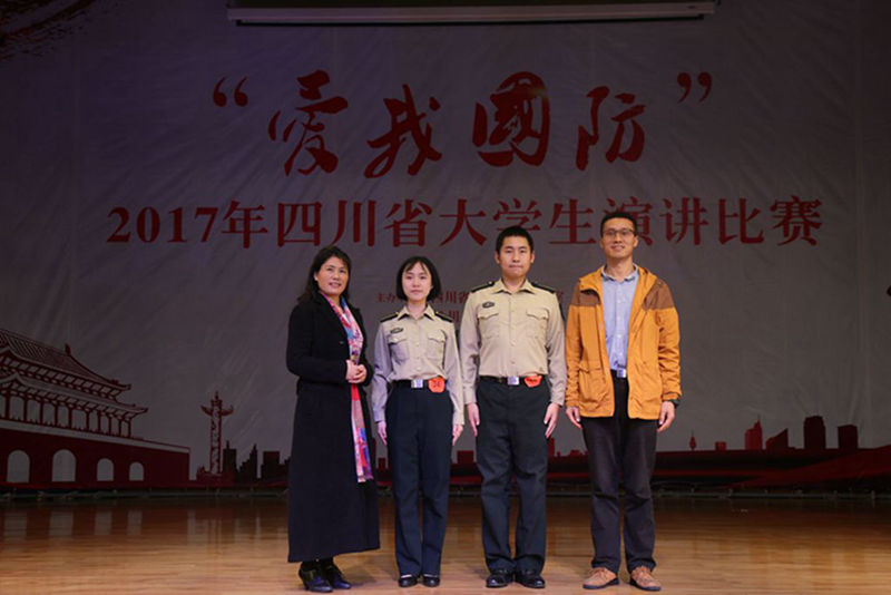 11月1日,四川省 “爱我国防”大学生演讲比赛决赛在成都师范学院举行。学生工作处精心组织,专门安排资源环境学院党总支书记李蕖和驻校选培办邵干事带队参加决赛,两位老师对两位同学的演讲内容、演讲技巧、仪表风范等方面进行了悉心指导,确保了参赛的顺利圆满。我校两名国防生邹馥蔚和罗京圣代表学校参加四川省决赛。国防生邹馥蔚脱颖而出,以总评分第一名的成绩摘得冠军,并获得代表四川省参加全国“爱我国防”主题演讲比赛总决赛的资格。国防生罗京圣荣获二等奖。