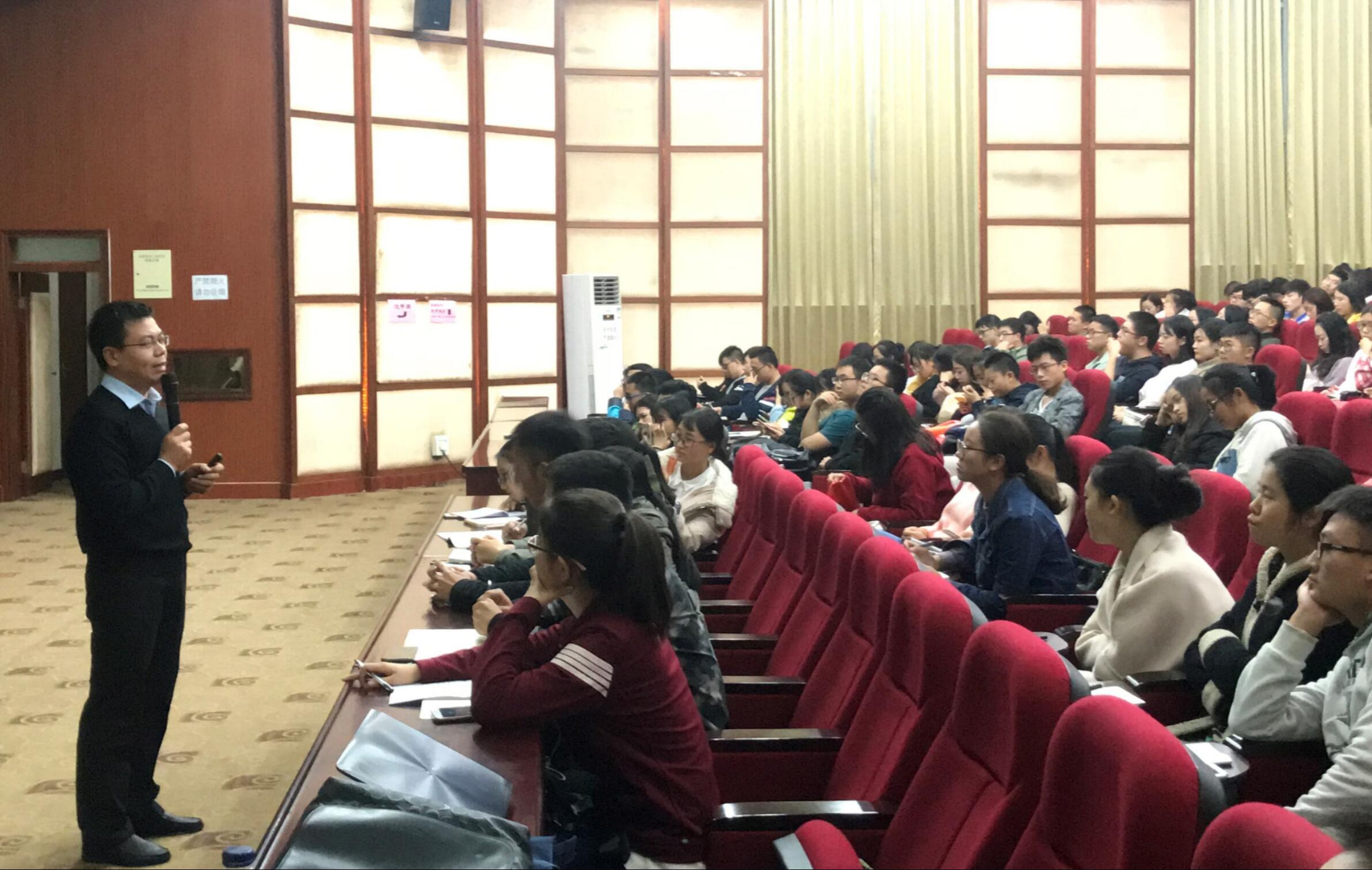校团委厉威成老师从“创青春”大赛背景、大赛内容、赛程及培训安排、参赛技巧、参赛收获等方面对大赛进行了宣讲和解读。