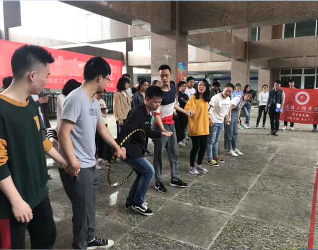 【本网讯】为了进一步贯彻落实党的十九大精神及两会精神,增强基层党支部的集体凝聚力,提高学生党员的综合素质。4月21日上午,通信工程学院学生党支部组织全体学生党员及入党积极分子在电子工程、计算机实验中心开展了支部活动月系列活动之学生党员素质拓展训练活动。第一学生党支部书记王燕、第二学生党支部书记张毅全程参与并指导。