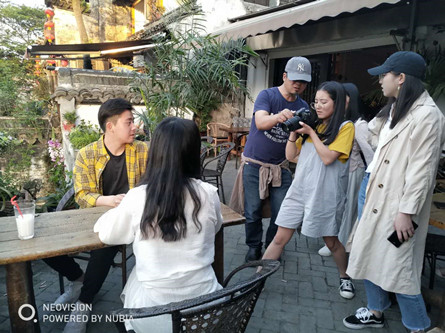 本次“DV摄影实践实训课程”由艺术设计教研室任课老师王文浩带队,谌力、齐琦、郭蕾3位老师协助教学指导和管理工作。在实践实训中重点强化安全管理,实施领队老师领导下的班组负责制,4位老师共同管理班长,班长联系各组组长,各组组长分别联系组员,实施高效实时全面覆盖的安全管理机制,同时按时指导、检查学生的拍摄作业,每晚工作持续到12点,保证了教学质量和学生安全。本次实践教学培养了学生的团结协作精神,提高了其对专业课程现场不确定性问题的应变能力。从简单的摄像机拍摄技巧、构图、拍摄的角度、用光以及后期的采集与编辑,让学生完整的体验了DV摄影行业公司工作模式的流程和真实情景,成果显著,达到了校内实践无法企及的教学效果。