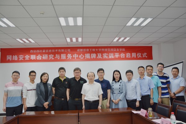 【本网讯】4月29日上午,网络空间安全学院和西安四叶草信息技术有限公司举行了网络安全联合研究与服务中心揭牌及实训平台启用仪式。