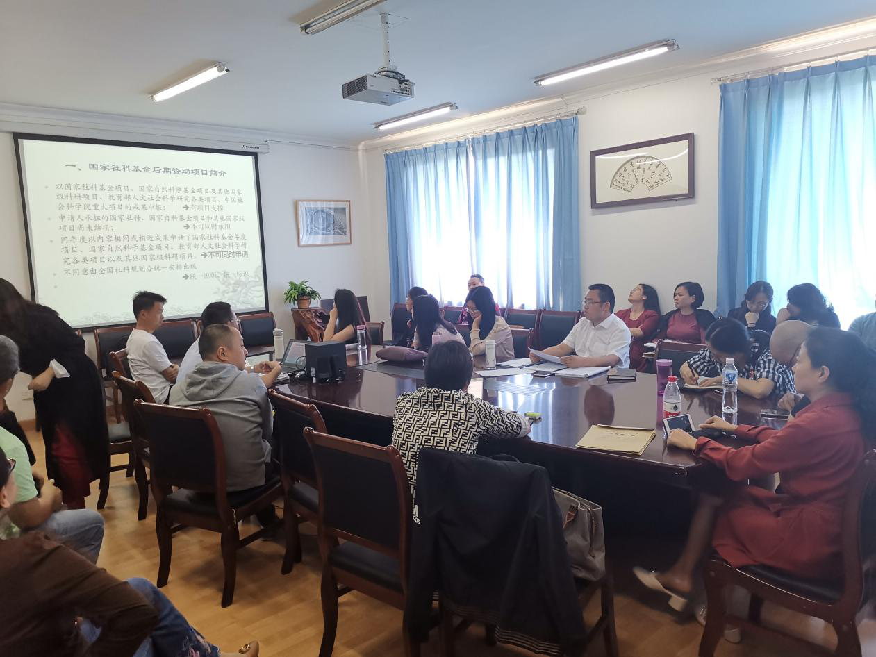 雷勇从国家社科基金后期资助项目的简介、优势和申报注意事项这三大方面为老师们做了详实的申报工作科普。他指出,国家社科基金后期资助项目是促进我国哲学社会科学繁荣发展中的导向作用,鼓励广大社科研究者潜心治学,扶持基础研究的优秀成果,而特设立的国家社科基金后期资助项目,他鼓励有资质的老师积极申报,不断提高学术水平,积累科研成果,从而为提升学院的整体科研水平做出贡献。