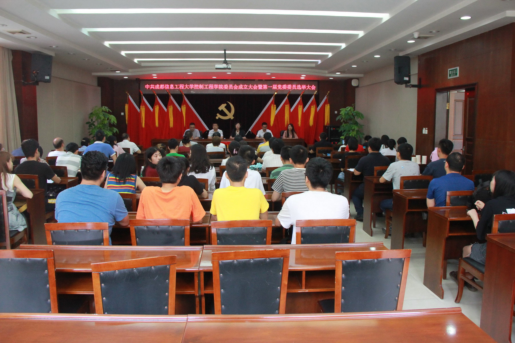 【本网讯】7月9日下午,在庄严的《国歌》声中,中共成都信息工程大学控制工程学院委员会成立大会暨第一届党委委员选举大会在行政楼第一会议室召开。控制工程学院分党委所属4个支部的中共正式党员参加大会,学院非中共党员的领导干部、科研骨干教师、民主党派人士列席会议。大会应到正式党员77名,实到65名。会议由学院分党委书记王嵩同志主持。