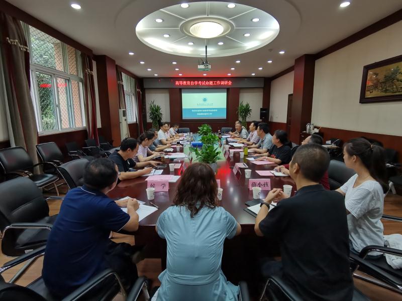 邹靳代表继续教育学院向调研组汇报了我校自学考试助学特色及命题管控办法。命题教师、合作单位、自考学生代表结合自身情况进行相关发言。