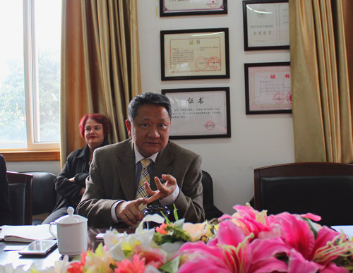 李贵卿对来宾的到来表示热烈的欢迎,并简要介绍了我校的基本情况和办学特色;Stephen Sim博士介绍了拉筹伯大学的基本情况,双方就中澳老龄人养老保障措施进行深入交流和探讨,就进一步合作达成初步意向。