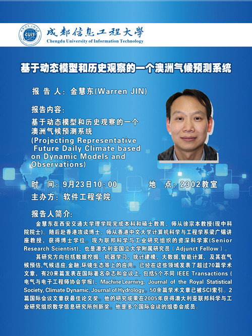 【学术预告】澳大利亚国立大学研究员金惠东到软件工程学院作学术报告