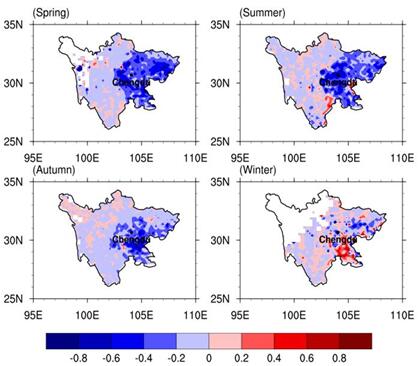 研究结果发现:近十年来四川盆地和成都地区年平均AOD变化趋势相似,在2010年达到最大,2015年达到最小,整体呈现一个对称的“V”型变化趋势;成都近10年的年平均AOD值的变化幅度比四川整体偏大,是四川盆地区域气溶胶的主要贡献源城市。四川盆地AOD呈现显著的“东高西低”分布特征,而其变化趋势则呈现“东低西高”的分布特征,盆地东部下降趋势尤为明显。从季节变化来看,春季AOD呈明显减小趋势;夏季四川西部AOD略有增加;秋季东部变化情况较复杂,地区之间变化率相差较大,但主要以降低趋势为主,西北部有弱增加趋势;冬季四川盆地AOD呈明显增长趋势。该研究结果将为今后地方政府雾-霾防治及环境措施的实施提供有效的决策支持。