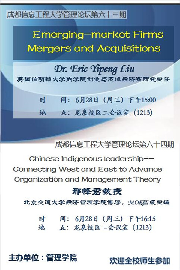 【学术预告】Emerging-market Firms Mergers and Acquisitions