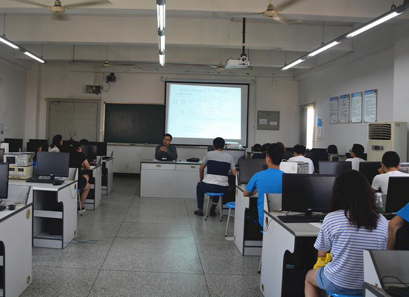 【本网讯】7月13日-18日,通信工程学院顺利举办暑期国际教育周的系列讲座,来自美国San Jose State University的Sotoudeh Hamedi-Hagh教授在实验楼6507给本院学生们带来了关于”suspendance & trajectance analysis”的电路分析系列专题讲座。