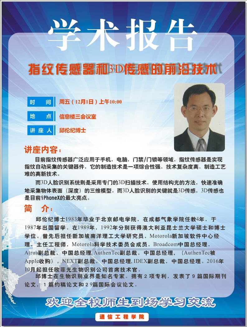 来源:通信工程学院 作者:林细俤  日期:2017-11-29  审核:新闻中心  点击: