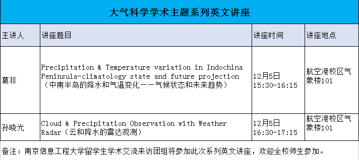 【学术预告】大气科学学术主题系列英文讲座
