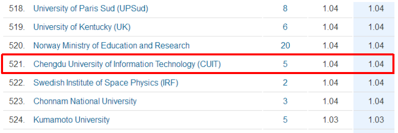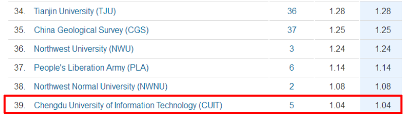 我校进入自然指数(Nature Index)“地球与环境科学”学科领域中国内地排行TOP 50