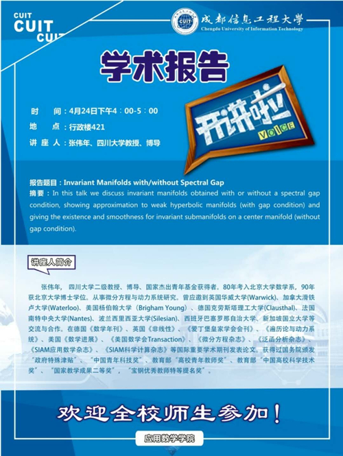 【学术预告】Invariant Manifolds with/without Spectral Gap