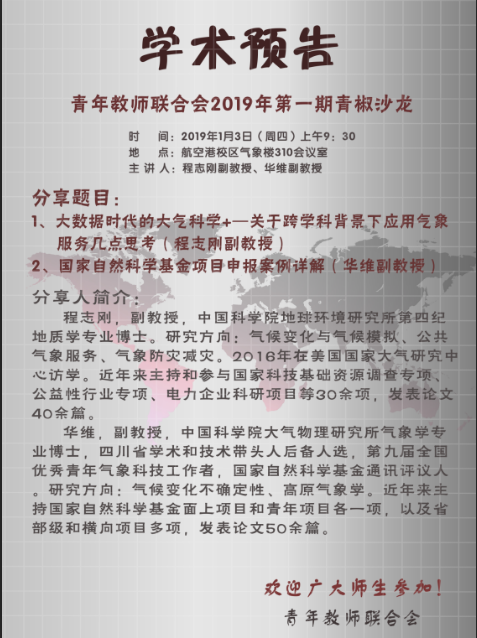 来源:大气科学学院 作者:尹欣  日期:2019-01-02  审核:新闻中心  点击: