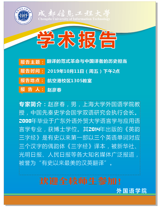 来源:外国语学院 作者:赵月  日期:2019-10-11  审核:新闻中心  点击: