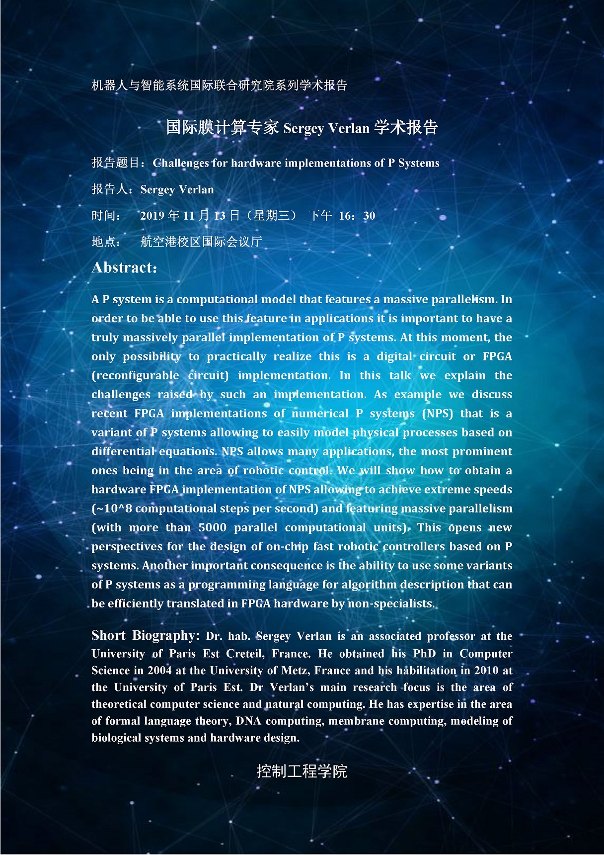 来源:控制工程学院 作者:郭栗  日期:2019-11-12  审核:新闻中心  点击: