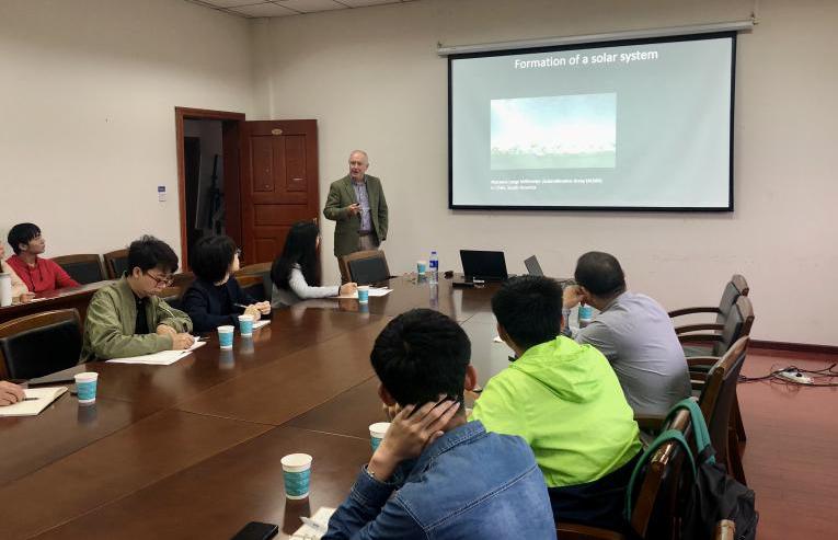 英国利兹大学John Plane教授做了题为“Impacts of Cosmic Dust in the Earth’s Atmosphere”的学术报告。John Plane教授从宇宙进入到地球大气的总尘埃量出发,详细讲解了宇宙尘埃的来源,说明了造成大气金属层意外比例的大气侵蚀过程,并通过实际案例模拟详细阐述了宇宙尘埃对地球大气的影响。