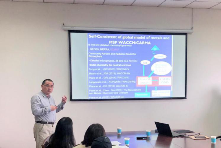 英国国家大气科学中心Wuhu Feng研究员主要介绍了WACCM的三维全球金属化学模块和利兹大学自主研发的TOMCAT/SLIMCAT模式。通过多个模拟案例分析,他谈到,在同一个模型中研究不同的中间层-低热层(MLT)金属层将使人类能够更好地理解天文学、化学,并能更好地控制MLT中不同金属层的输送过程。