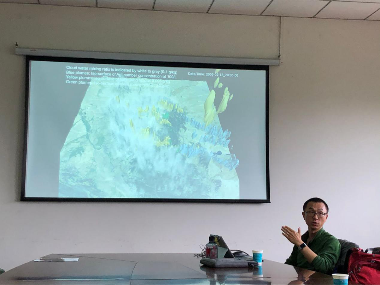 美国国家大气研究中心薛麓林研究员应作了题为“Modeling system for cloud seeding”和“An Overview of the SNOWIE Field Campaign”的学术报告,对冬季地形云通过外界催化物质改变云和降水效果的问题进行了深入系统的阐述,并通过敏感性数值试验论述了碘化银对云微物理过程的具体影响。