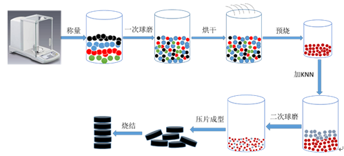 图1 KNN/NiZnCo磁电复合材料的制备工艺流程示意图