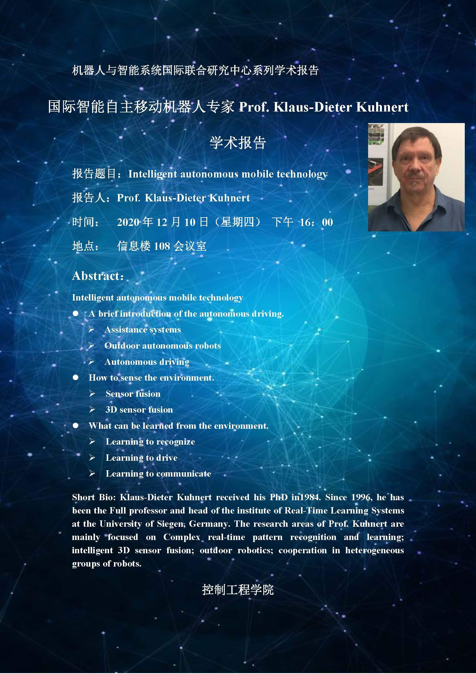 国际联合研究中心系列学术报告4预告:国际智能自主移动机器人专家 Prof. Klaus-Dieter Kuhnert