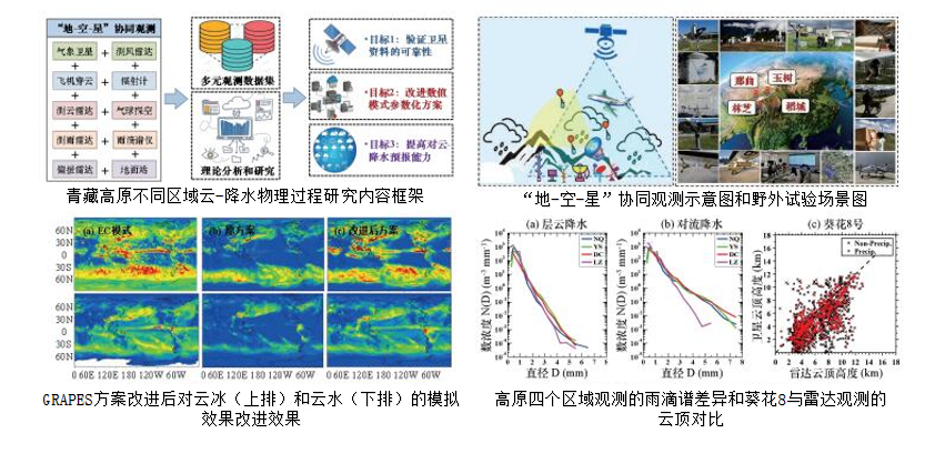 对青藏高原云降水物理和水循环过程认知的缺乏是限制高原及下游地区天气预报准确性的主要原因之一。在科技部重点研发专项-重大自然灾害监测预警与防范课题的支持下,实验室于2019-2021年在高原不同区域开展了云降水“地基空基星基"协同观测试验,目标是研究高原云降水物理特征和水循环机理,验证卫星资料在该地区的适用性,改进该地区数值模式参数化方案并提高天气模拟和预报水平。