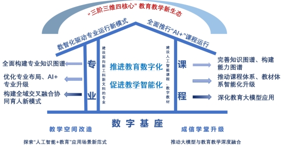 借力四川省人工智能学院,牵头省属高校,构建人工智能产教融合协同育人联合体;提升教师教学能力和数字素养,促进教师开展教育教学改革;强化优质数智课程建设,增设“数智项目”43项,其中“AI+课程”17门,“数智教材”11项,“数智教学团队”3项,“数智课堂”5项,“数智实验”7项;积极探索AI+知识图谱赋能新形态微专业建设与课程教学创新,选取4个具有代表性的微专业作为知识图谱运行首批试点,着力应用类复合型人才培养,立项相关校级本科教学工程项目19个,申报立项省级教改项目16个;选树一批人工智能赋能教育典型案例,面向全校学生开设34门人工智能相关通识课,提升学生的数字素养,落实应用类复合型人才培养着力点;牵头推进两校区270间教室数智化改造升级,优化人才培养智能化基础环境建设;持续完善“云上成信”数智化教学资源平台的建设和共享,首创“一平台、四中心”主体架构,包含课程资源采集中心、数字出版中心、智慧运行中心、教学管服中心,为学校提供资源采录、编辑出版、线上运行、管理服务全场景应用,有效支撑线上线下混合式教学改革。