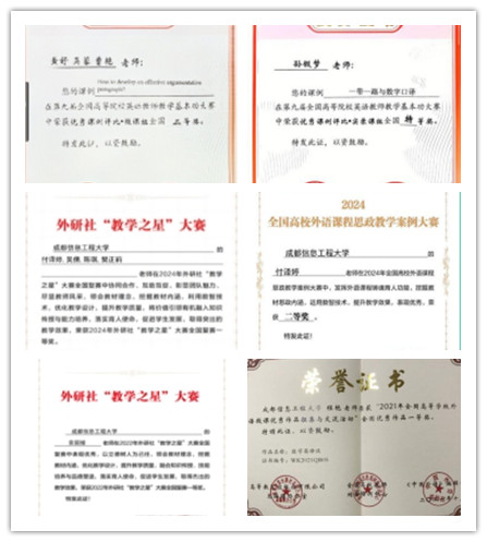 师资队伍结构不断优化。多途径积极引进优秀青年人才,近几年引进博士9人,支持多名优秀教师在职攻读博士、赴境外研修,组织教师参加国内研修班及各级各类培训达400余人次。教师教研能力和教学水平显著提升,国家级、省级、校级教学竞赛获奖分别达到20人次、30人次、32人次。其中,有青年教师获第九届全国高等院校英语教师教学基本功大赛实录课组全国特等奖,为学校首次获得该奖项的最高荣誉。专任教师中具有博士学位的教师11人,硕士及以上学位教师比例达到87%,副高级以上职称教师比例达到12%,教师队伍结构不断优化。