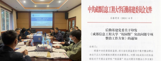 后勤基建党委高度重视“校园餐”突出问题专项整治,成立专班、专题部署,深入开展自查自纠,扎实推进整改。组织研讨后勤基建重点风险领域及防控机制,全面排查风险漏洞;制定“纪律规矩教育”清单,开展纪律教育及“身边事教育身边人”警示教育,推动纪律教育制度化、常态化。加强内控管理,梳理廉政风险点9方面30条,修订完善制度18项,聚焦招标采购、工程维修、物资管理、经营合作等重点领域,通过优化流程、常态化提醒谈话等措施强化风险防控。与合作方建立沟通机制,开展常态化约谈,共建风清气正的合作环境。全覆盖开展新进人员无犯罪记录核查及廉洁承诺书签订。